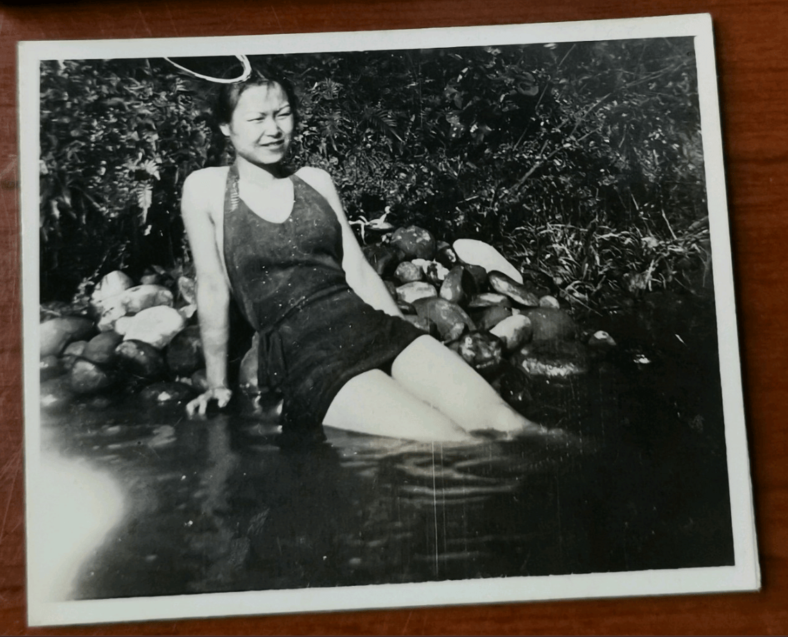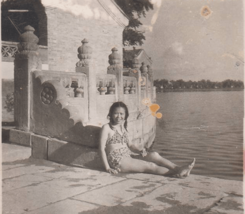 还有一张民国时期的老照片,照片中的女孩身穿泳装,露出修长的大腿。背面写着“全恒、钰恒二位惠存,汪淑卿敬赠,1938年10月19日”。这张照片由汪淑卿送给友人,显然她非常自信,不仅敢穿上泳装,而且拍摄出这种大胆而时尚的照片,显示出她那时非常前卫的思想。