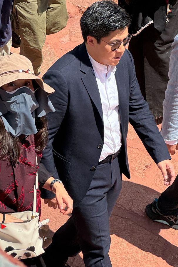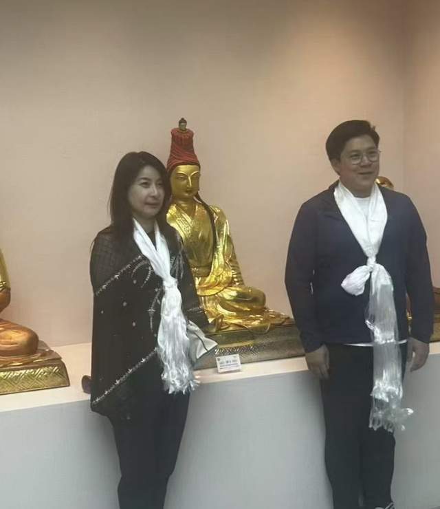 抵达布达拉宫后,郭晶晶摘下口罩和帽子和老公合影,霍启刚站姿十分标准,旁边的晶晶倒是看着很松弛。