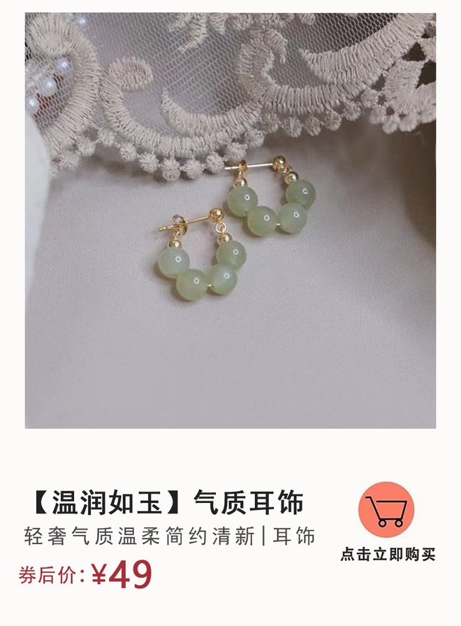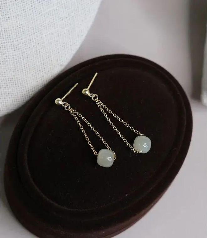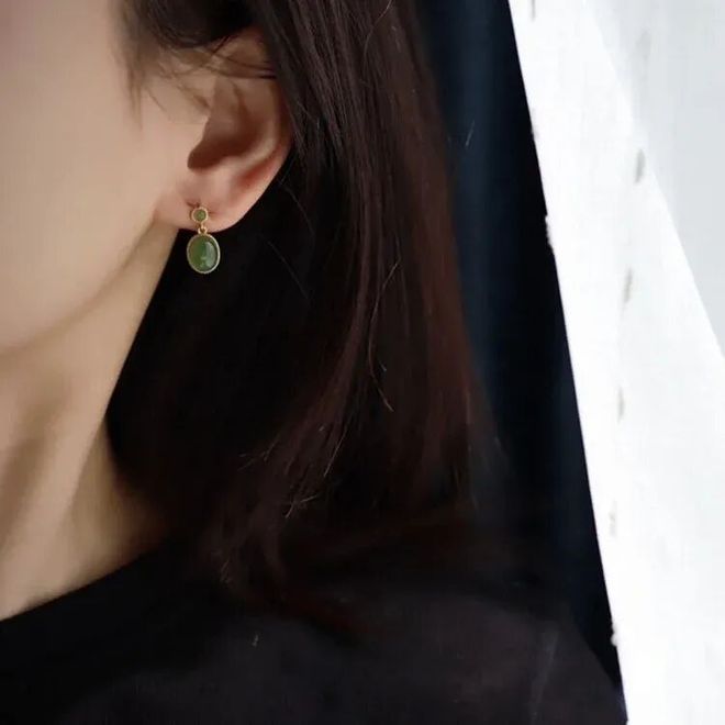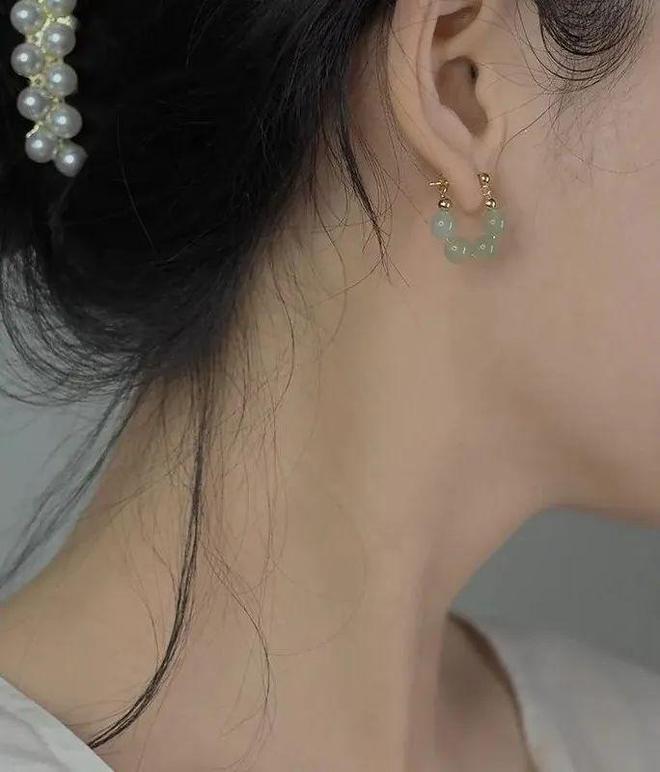 转动着细腻柔润玉石的灵动,小玉珠光泽度饱满,小小的一枚耳饰透露出女人的精致。