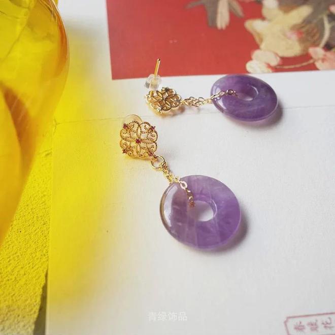 典雅华丽的紫水晶本身就是复古高贵的代表,在暗色调汉服还是旗袍中,无疑带来一抹光亮。