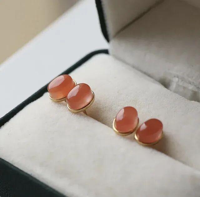 耳饰主体精选高品质天然冰底南红,料质纯净莹润,色泽均匀浓艳,既不张扬也不暗沉。